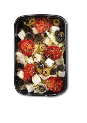 کاهو-زیتون سبز-زیتون سیاه-گوجه خشک ارگانیک-پنیر فتا کم چرب-کینوا