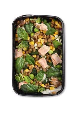 بروکلی-تن ماهی بدون روغن-کاهو پبچ-پبارچه-ذرت-عدس-نعنا-نخود فرنگی